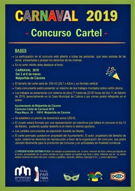 El plazo de presentación concluye el 11 de febrero a las 22:00 horas y se puede entregar en la casa de cultura así como a través de correo postal a la dirección: Ayuntamiento de Malpartida de Cáceres, Concurso Cartel de Carnaval 2019, Plaza Mayor número 30, cp. 10.910.