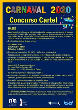 El plazo de presentación concluye el 31 de enero a las 21:00 horas y se puede entregar en la casa de cultura así como a través de correo postal a la dirección: Ayuntamiento de Malpartida de Cáceres, Concurso Cartel de Carnaval 2020, Plaza Mayor número 30, cp. 10.910.