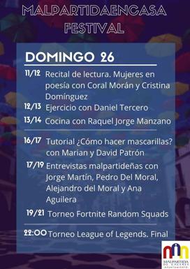 En el cartel se recogen desde recitales de literatura hasta clases de cocina, ejercicio, música en directo, maquillaje, peluquería… e incluso torneos de videojuegos como Fortnite Y league of Legends.