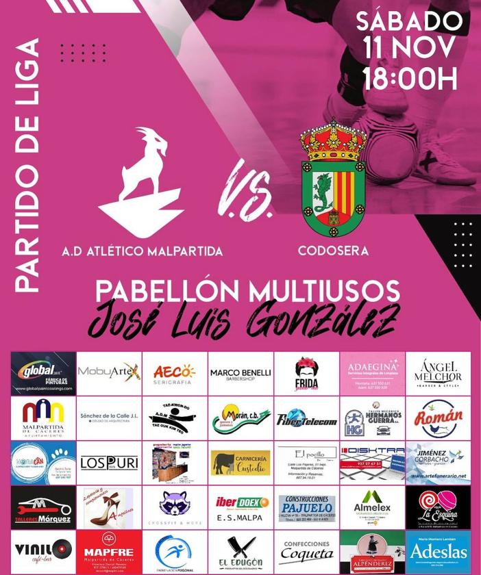 Los malpartideños se encuentran en el quinto puesto de la clasificaciónEl próximo sábado, día 11 de noviembre, el AD Atlético Malpartida FS volverá a jugar en casa para enfrentar, ante el Codosera CF, el partido correspondiente a la sexta jornada de la actual liga de Primera División Extremeña Sala.
