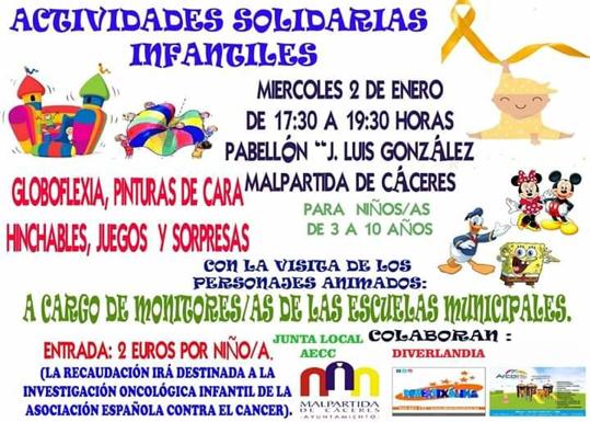 En la Fiesta Infantil, organizada por monitores y ex monitores, colabora el Ayuntamiento de Malpartida de Cáceres con la aportación de materiales y el transporte de los mismos y la cesión de infraestructuras, además de la empresa Arco Iris y la empresa Divertixalima, que cederán sendos hinchables y la Junta Local de la AECC de Malpartida de Cáceres.