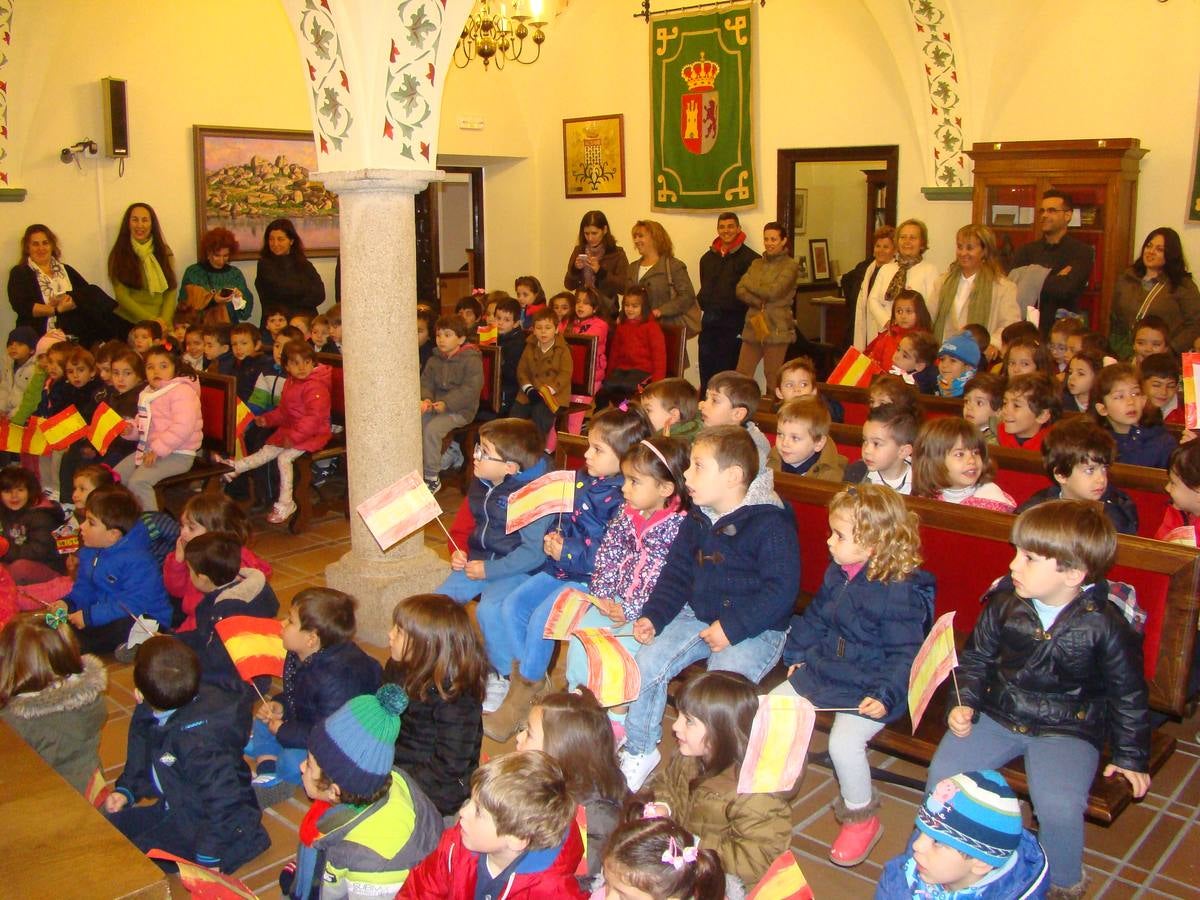 La visita fue celebrada el viernes 4 de diciembre en el Salón de Actos donde se congregaron las seis clases de infantil acompañadas de los maestros, tutores, padres y madres. Allí el Alcalde, Alfredo Aguilera, acompañado de dos concejalas les explicó las banderas, el escudo municipal, el bastón de mando, las medallas, entre otras cosas, para terminar mostrándoles la Constitución y explicándoles su significado e importancia. Posteriormente los niños cuyas edades oscilan entre los tres y los seis años, pudieron realizar preguntas al equipo de gobierno sobre sus inquietudes.