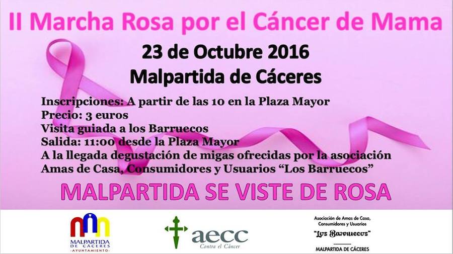 El domingo 23 de octubre tendrá lugar la II Marcha Rosa por el Cáncer de Mama que se desarrollará por la senda de las Cigüeñas en Los Barruecos con una visita guiada.