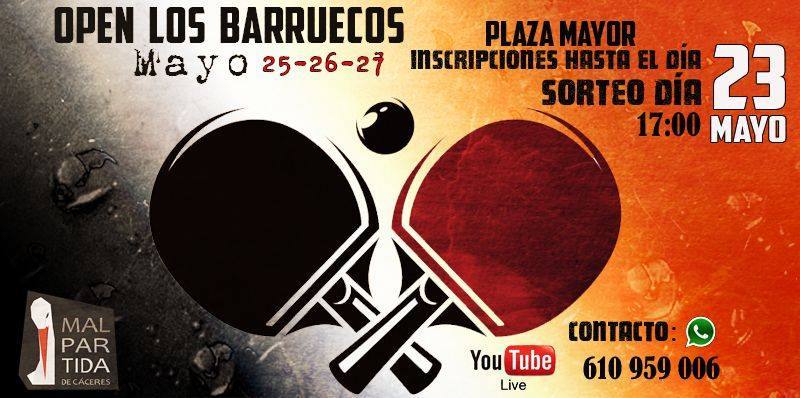 El fin de semana del 25 al 27 de Mayo, la Plaza Mayor de Malpartida de Cáceres se convertirá en el escenario de la 2ª Edición del Open Los Barruecos de Tenis de Mesa, organizado por 24 Horas FS Malpartida, Callejero Joven y el Centro Joven Municipal.