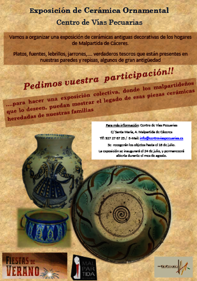 El Centro de Vías Pecuarias de Malpartida de Cáceres está organizando una exposición de cerámicas antiguas ornamentales de los hogares del municipio.