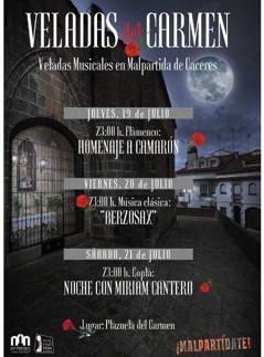 Los próximos 19, 20 y 21 de julio, Malpartida de Cáceres contará con una de sus citas de referencia del verano, el Festival Musical Las Veladas del Carmen, organizado por el Ayuntamiento de la localidad.