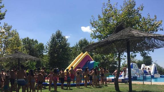 Por la mañana, a las 12:00 horas, comenzaron las actividades en la piscina municipal, donde los más pequeños pudieron disfrutar de numerosos juegos y actividades acuáticas, con hinchables y toboganes acuáticos.