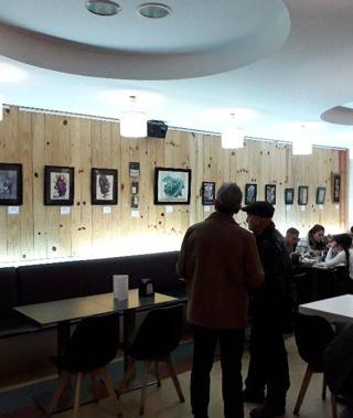 En esta exposición ha presentado dos colecciones: Naturaleza Otoñal e Historias pintadas. Se trata de un total de 17 cuadros donde la autora experimenta con las formas, las texturas y los materiales, los cuales van desde la cerámica a las tintas, pasando por las acuarelas, marmolados, tés, nogalinas, Además de diversos materiales orgánicos con los que logra un trabajo muy elaborado, atractivo y artístico, que atrae la mirada del espectador logrando transmitir la sensación de armonía y belleza en cada uno de sus cuadros.
