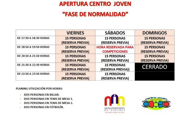 El próximo viernes, día 23 de octubre, reabrirá el Centro Joven Municipal de Malpartida de Cáceres si, como ha señalado el Ayuntamiento de la localidad, todo continúa igual con respecto a la incidencia del coronavirus en el municipio.