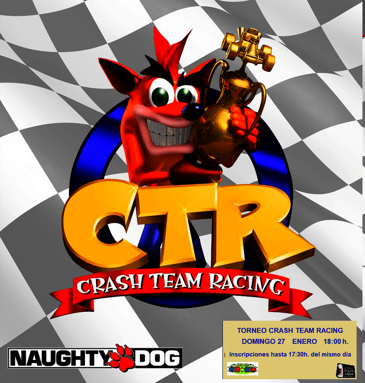 Para el domingo, 27 de enero, han organizado otro torneo, esta vez de 'Crash Team Racing', que comenzará, así mismo a las 18:00 horas. Al igual que el anterior, el plazo para apuntarse termina el mismo domingo a las 17:30 horas.